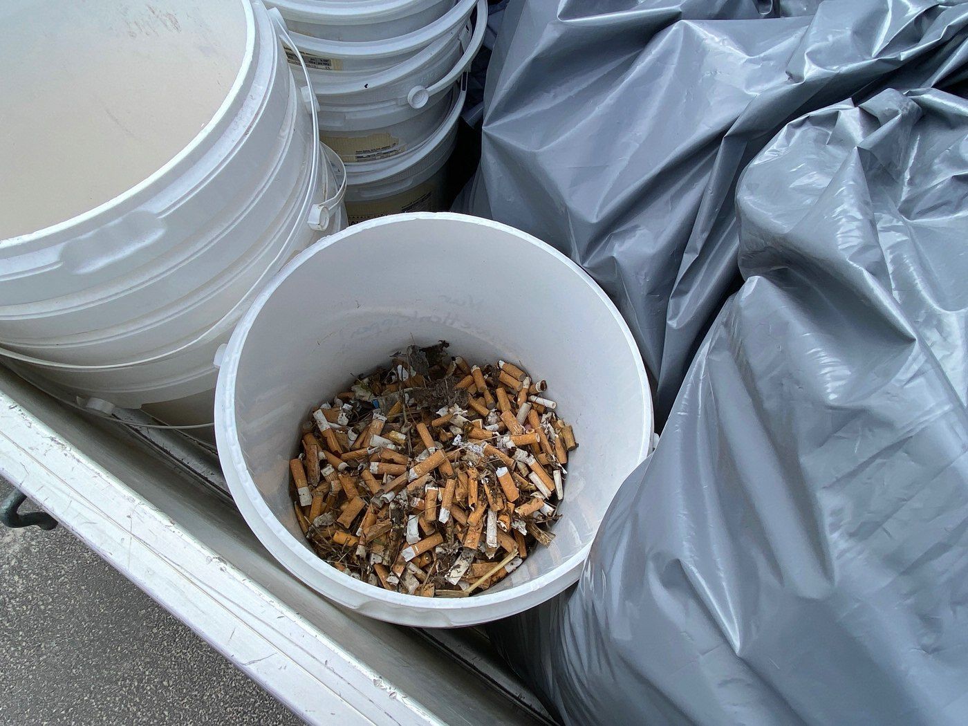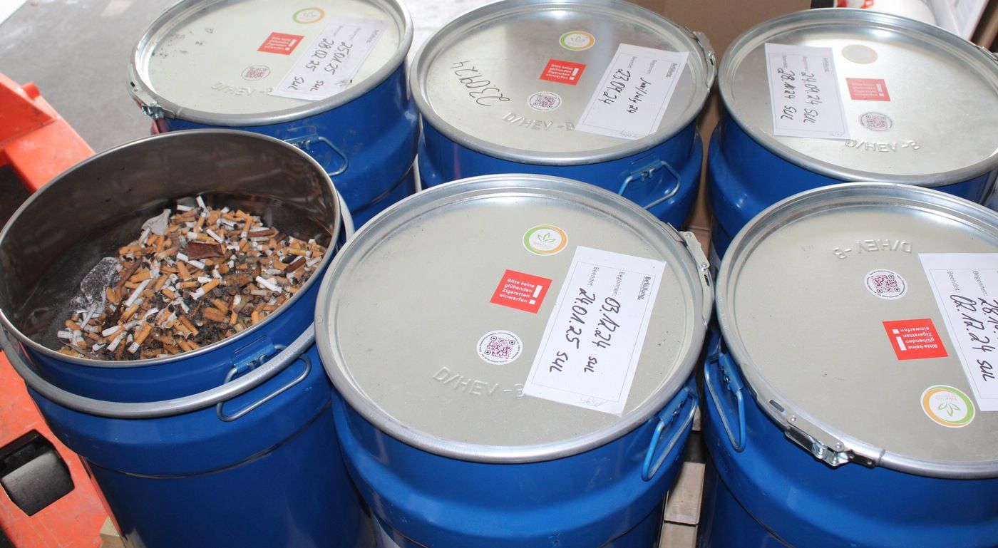 Massen an Zigarettenkippen: fast 1/3 einer Mülltonne voll