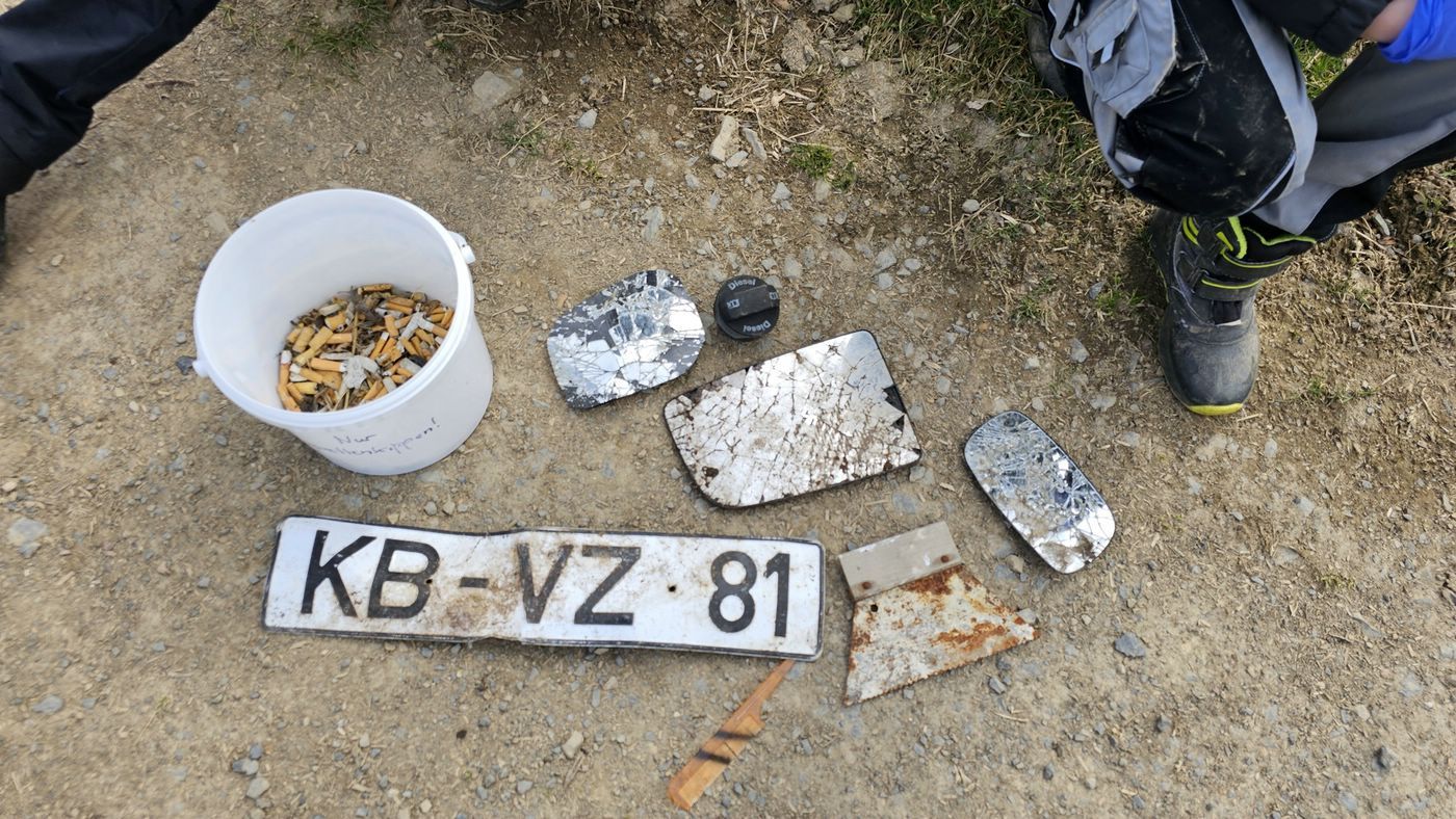 - Kuriositäten: Reifen, Kissen, Skischuh, Gartenstuhl, Katzentransportbox, Dunstabzugshaube